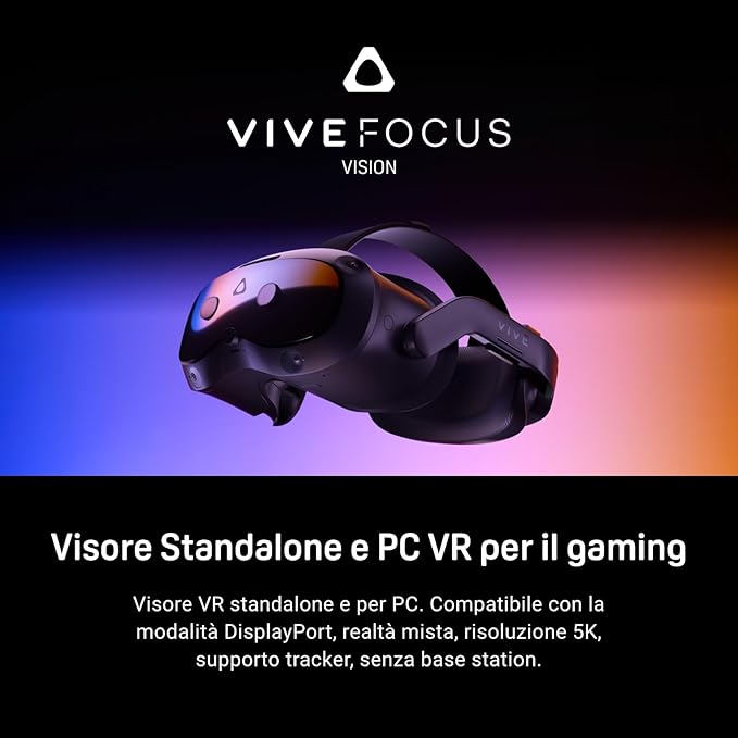 Soluzione VR All-In-One: la serie VIVE Focus offre esperienze VR standalone e per PC. Sfrutta la potenza della realtà virtuale con display ad alta risoluzione, funzionalità di tracciamento versatili e applicazioni immersive. Senza base station.