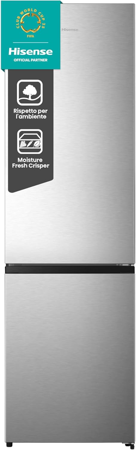 Hisense RB440N4ACA – Frigorifero Combinato Total No Frost, 335L, Classe A, Inox, Inverter, Silenzioso 35 dB, Porta Reversibile