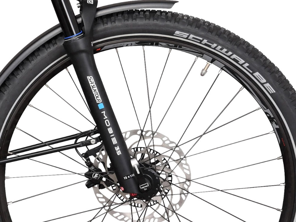 • Sospensioni confortevoli: Forcella SR Suntour Mobie35 Air con escursione di 100 mm per una guida confortevole su sentieri sconnessi e piste forestali.