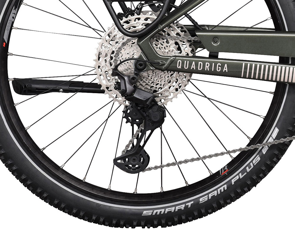 • Ruote stabili: Cerchi SRODI TRYP30 con mozzi Shimano XT per una trasmissione della potenza e una durata ottimali.