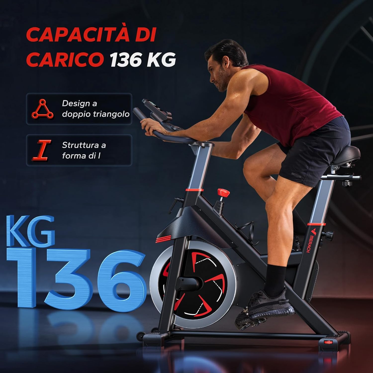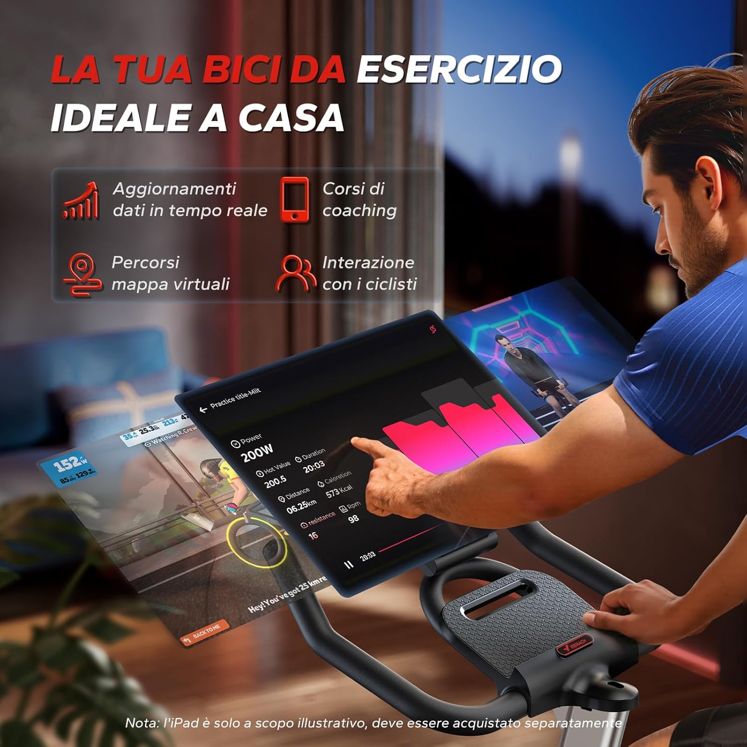 | Caratteristiche | App interattiva con statistiche in tempo reale, resistenza regolabile, seduta comoda e regolabile, guida silenziosa e fluida |
